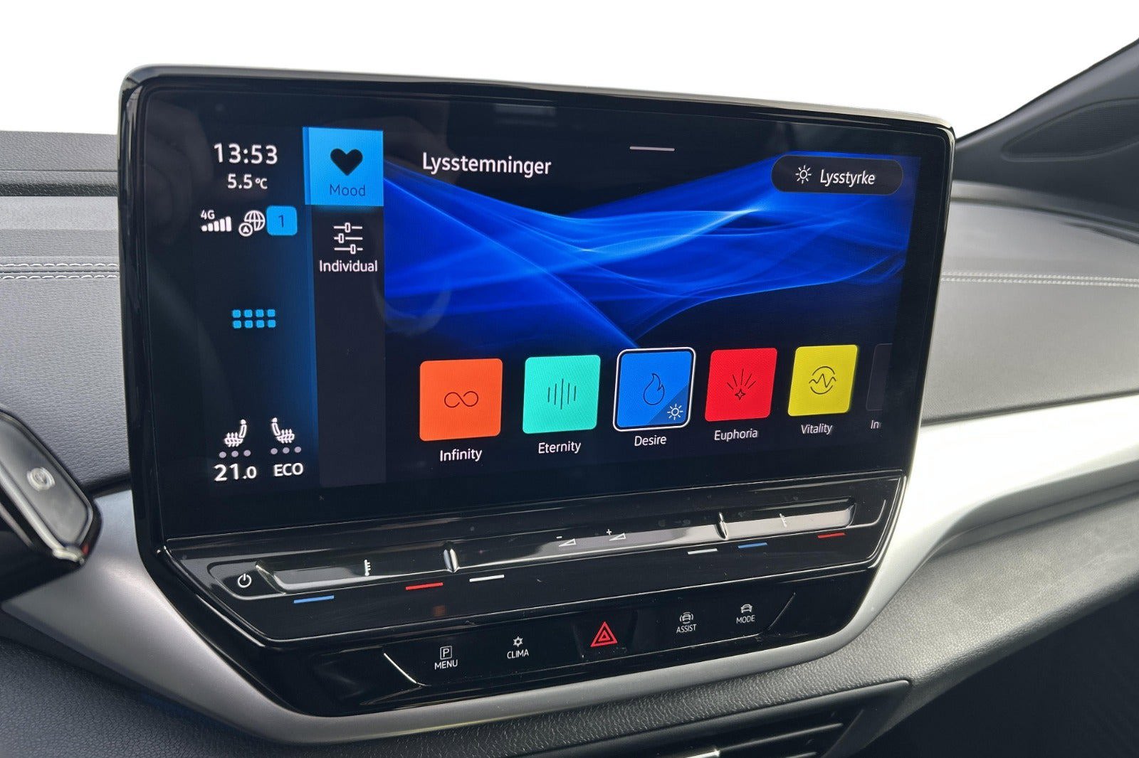 Assistentpakke Ambientebelysning ved dørhåndtag, nøglefri betjening Advanced, Lane Assist, Bakkamera, tyverialarm, Pre-Crash og Park Assist Plus, Front assist inkl. City Emergency Brake med fodgænger og cykel overvågning